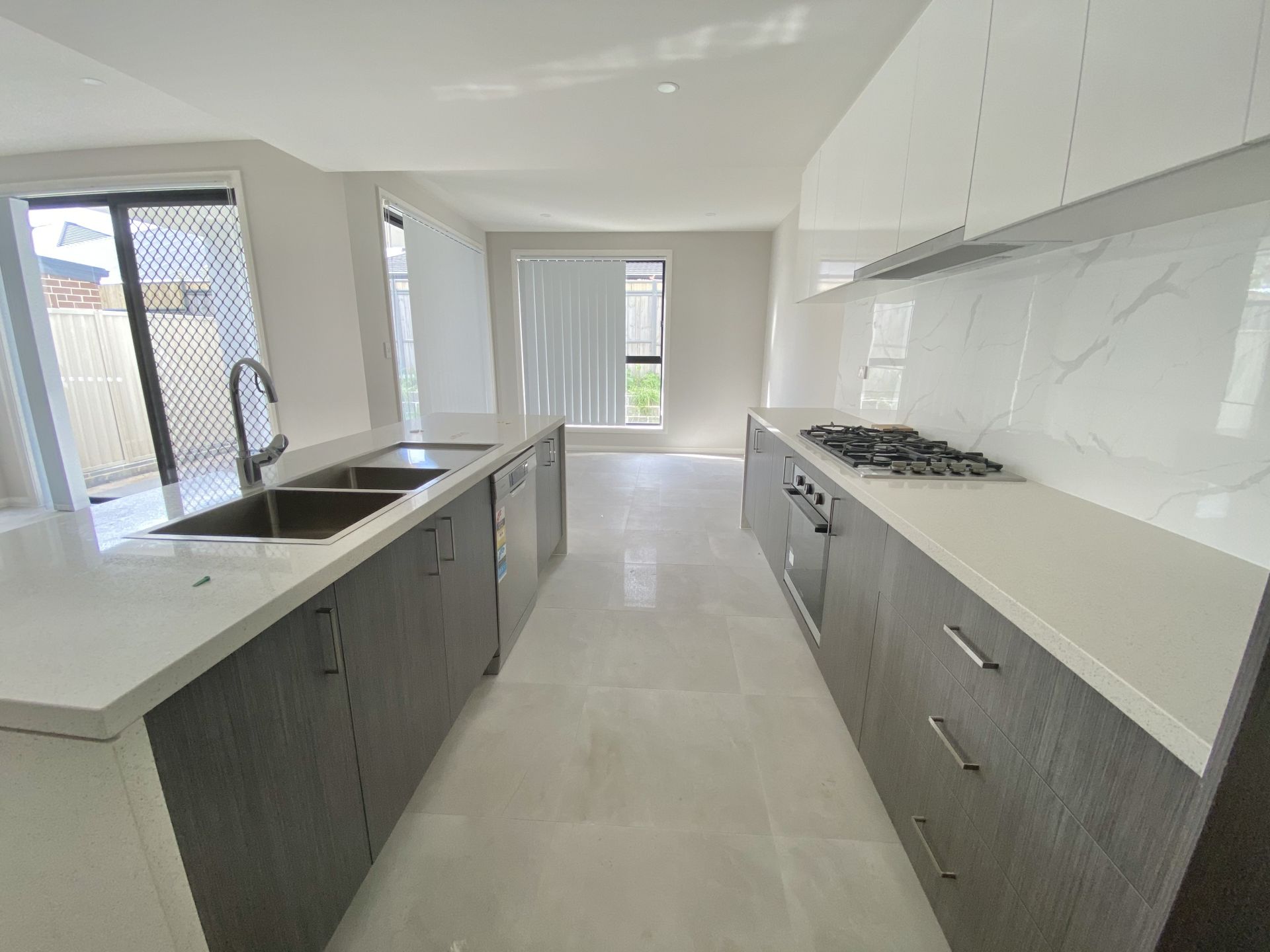 * Modern kitchen with stone bench top & stainless steel appliances including