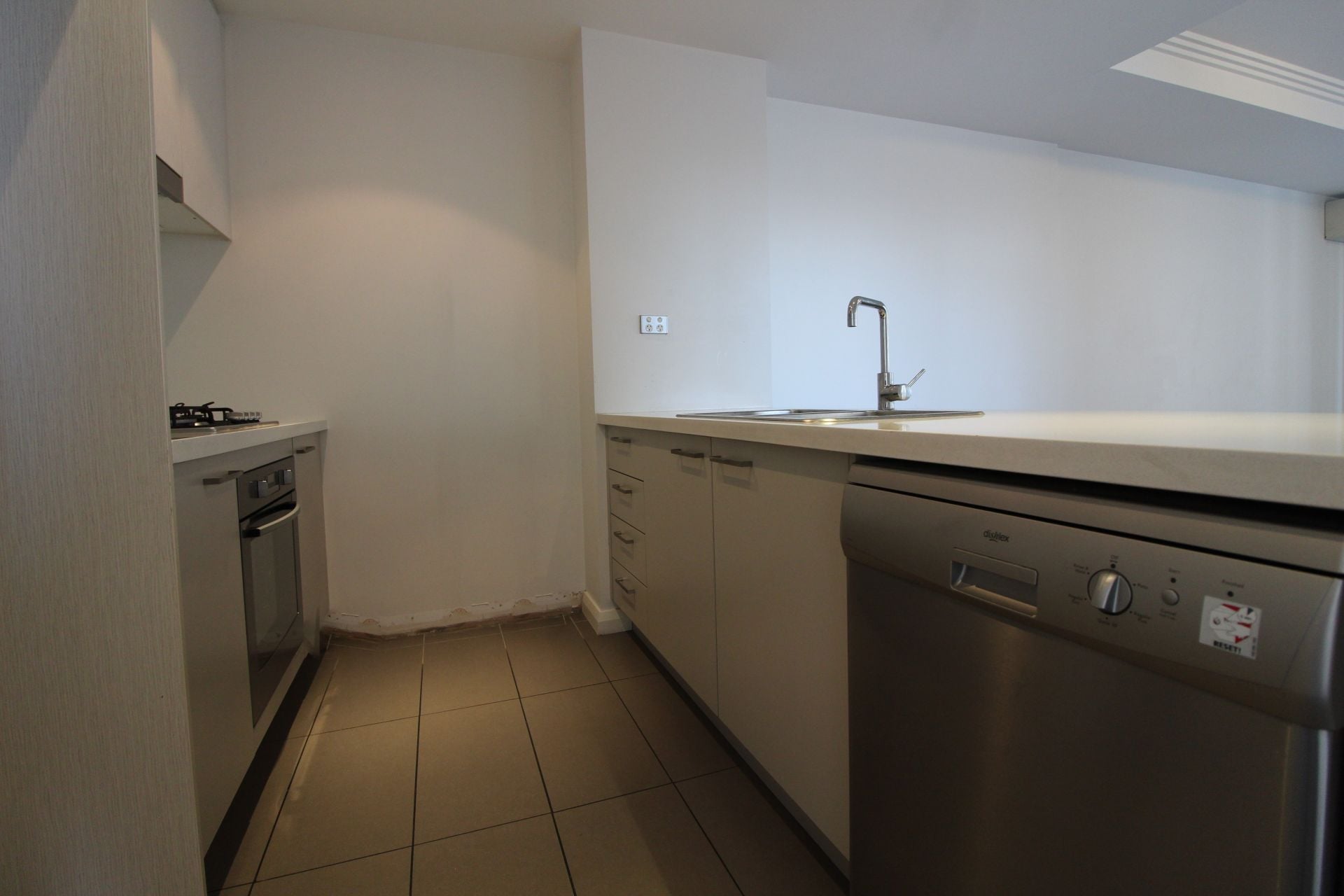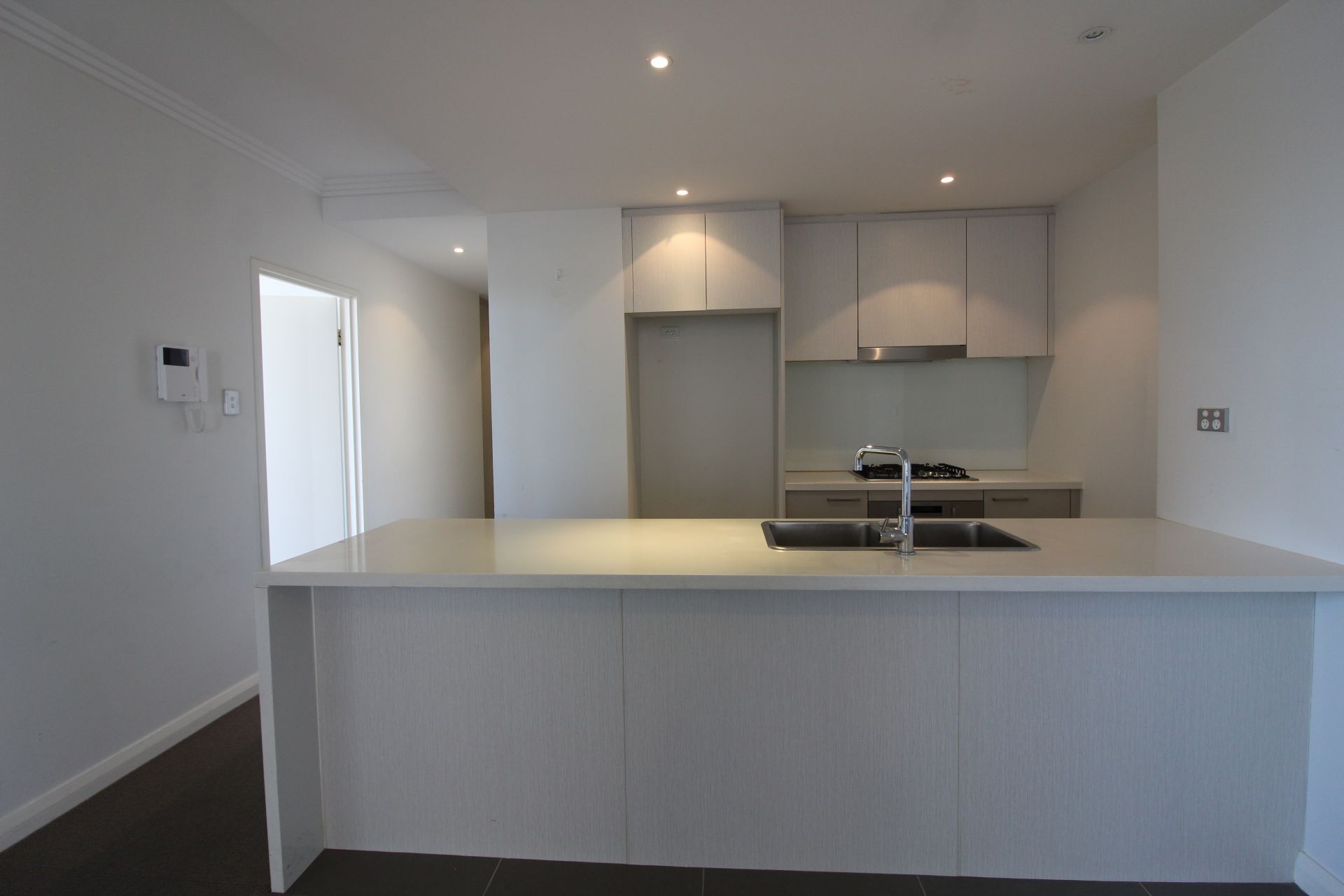 * Modern gas kitchen with stone bench tops and dishwasher