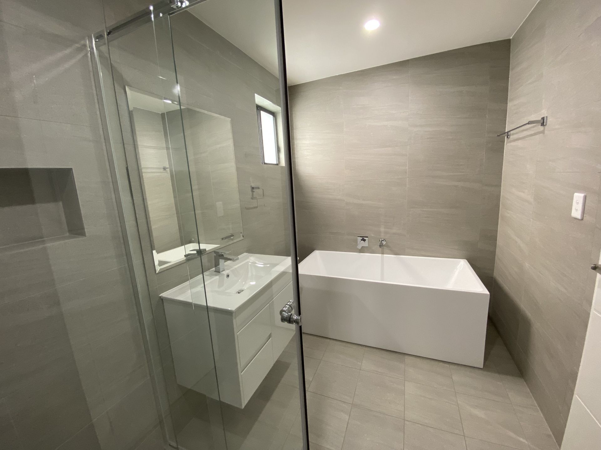 - Two bathrooms with floor to ceiling tiles