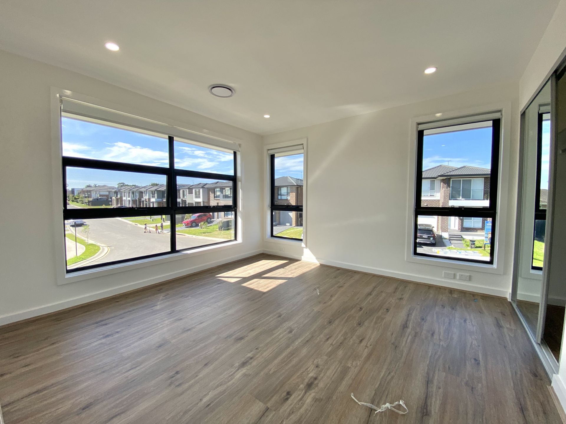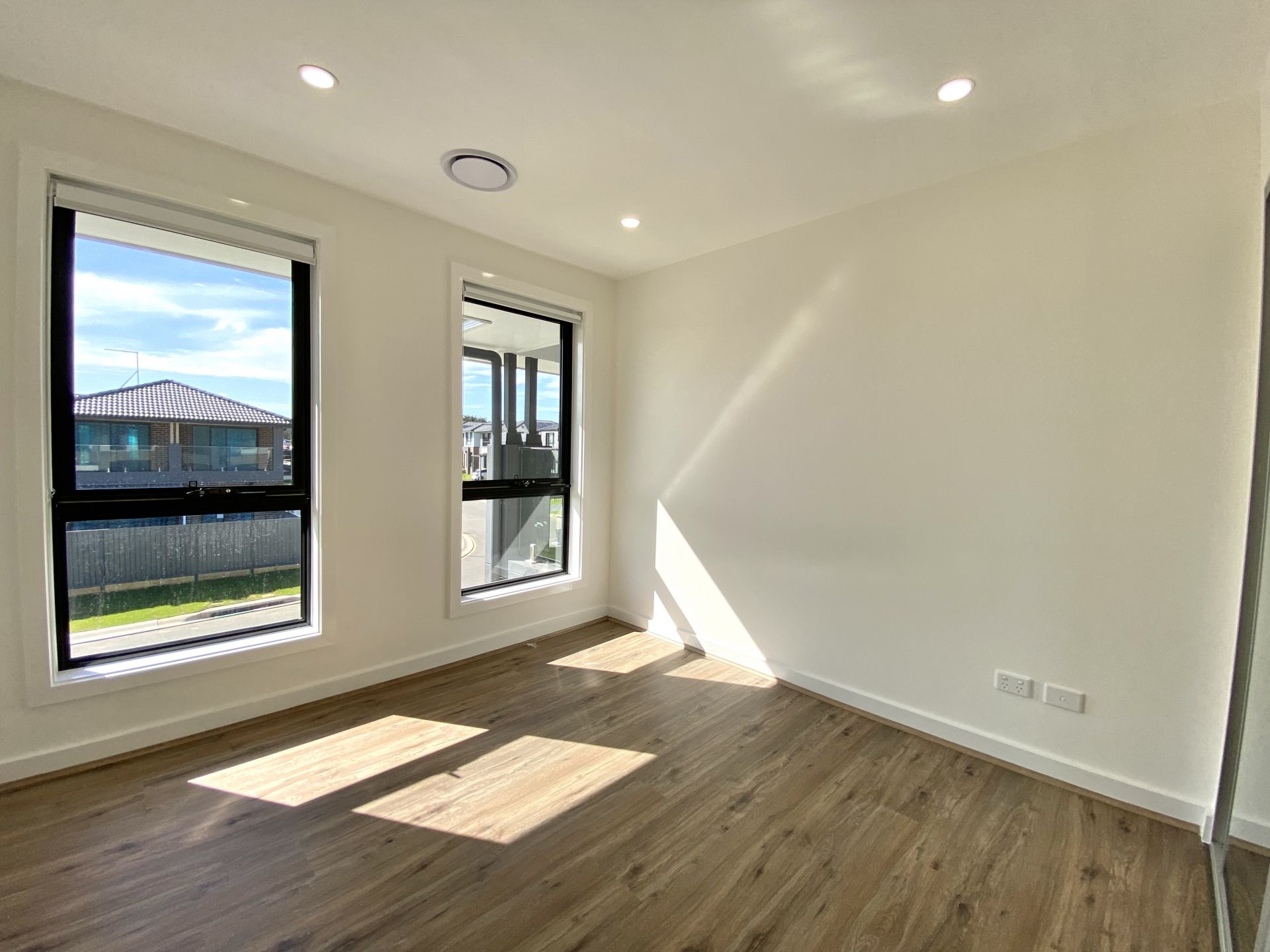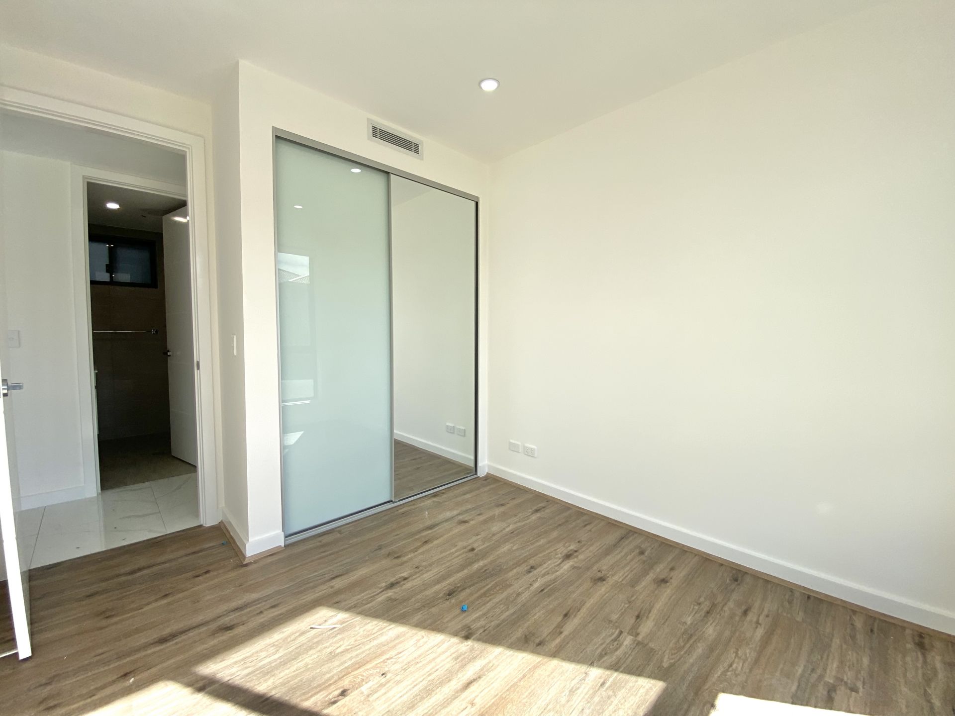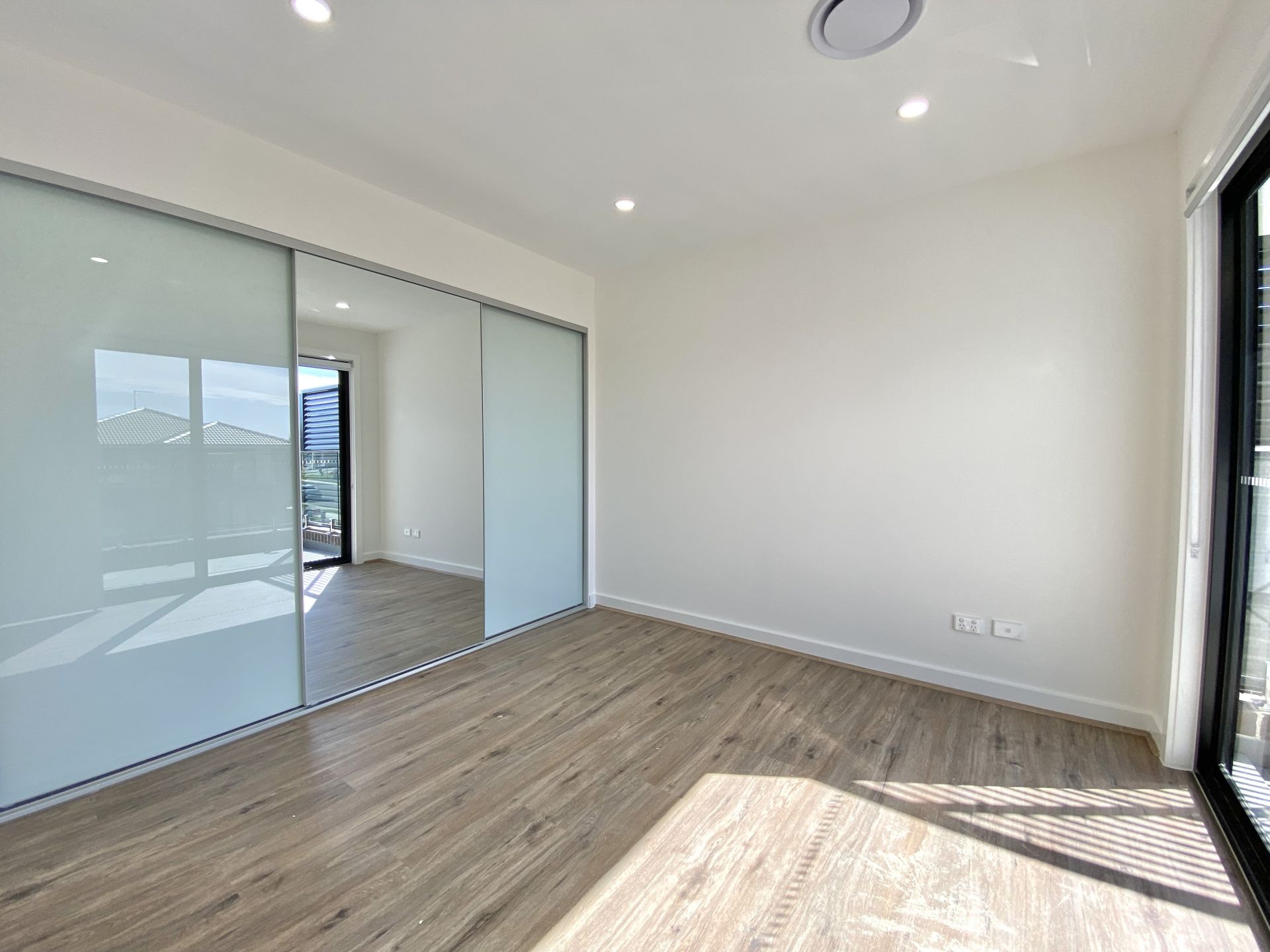 - Wooden bedroom flooring and mirrored wardrobes
