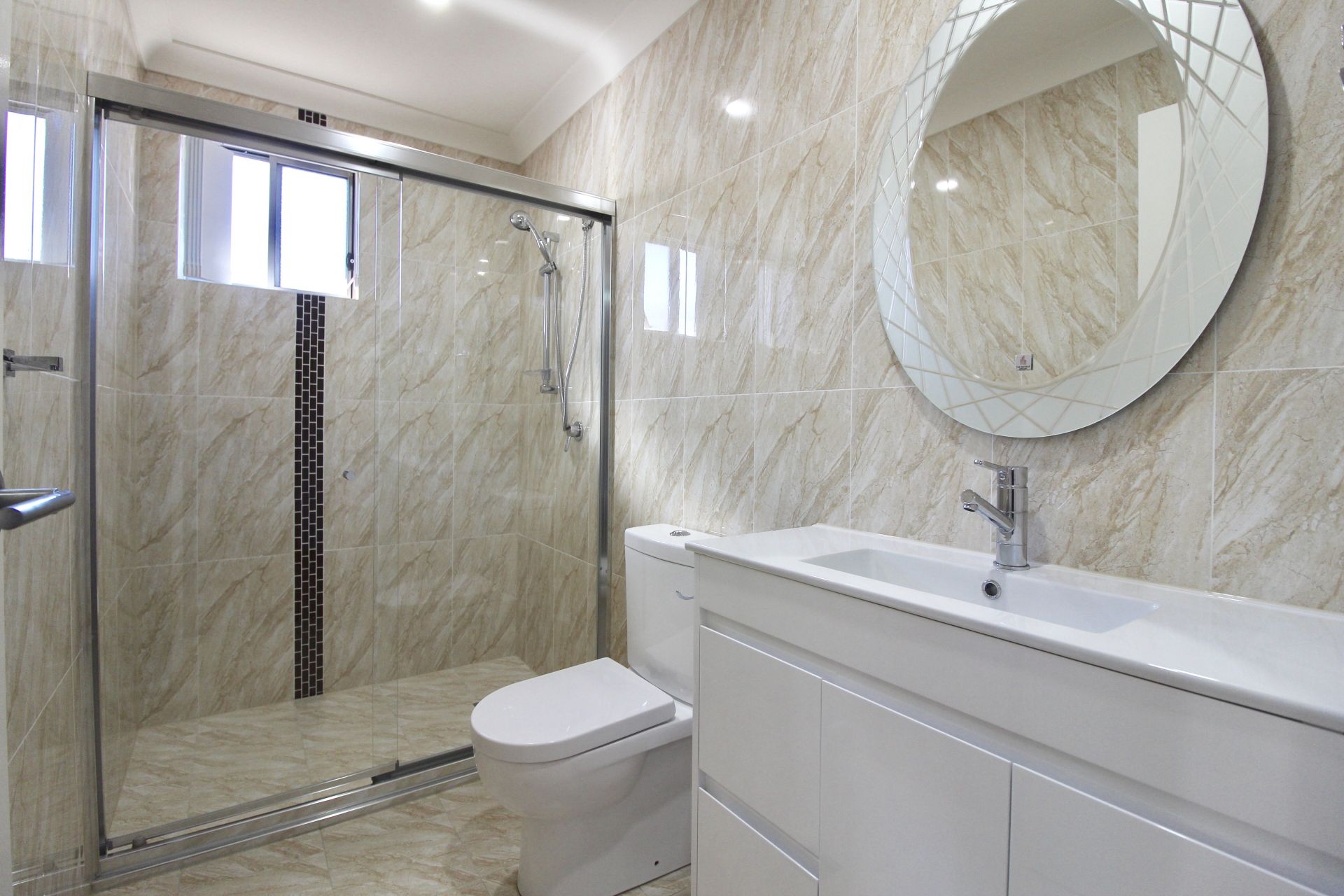 - Combined bathroom and laundry downstairs