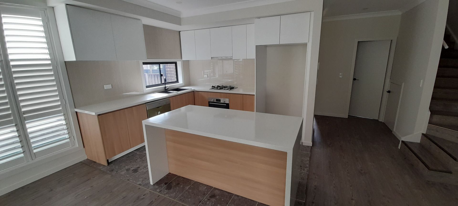 - Kitchen boasting stone benchtops, gas cooktop, and stainless steel appliances