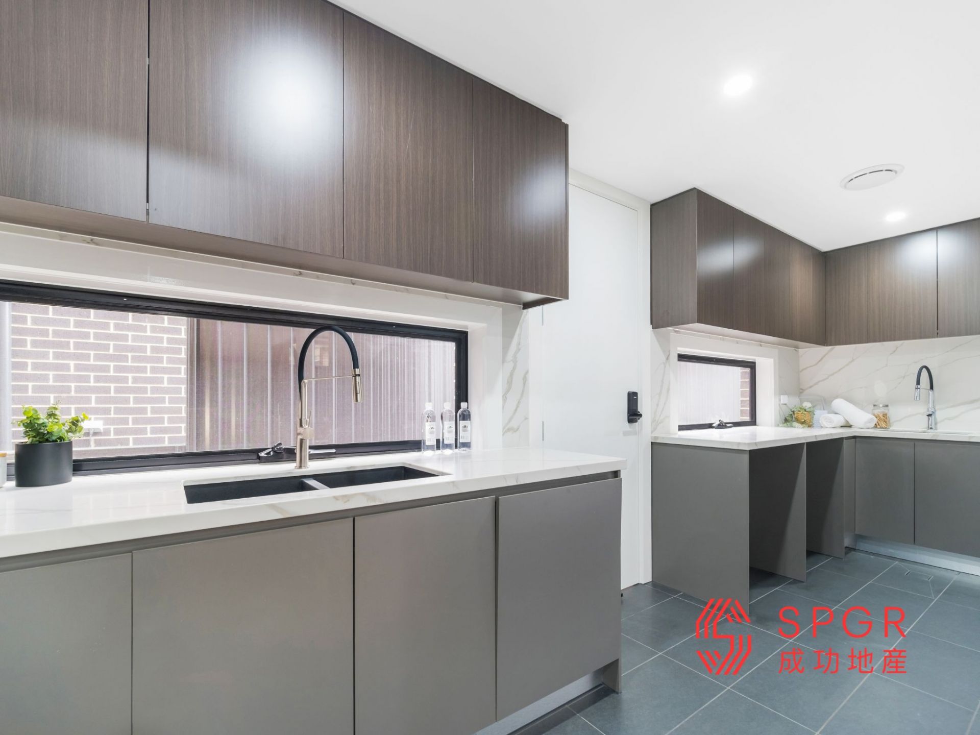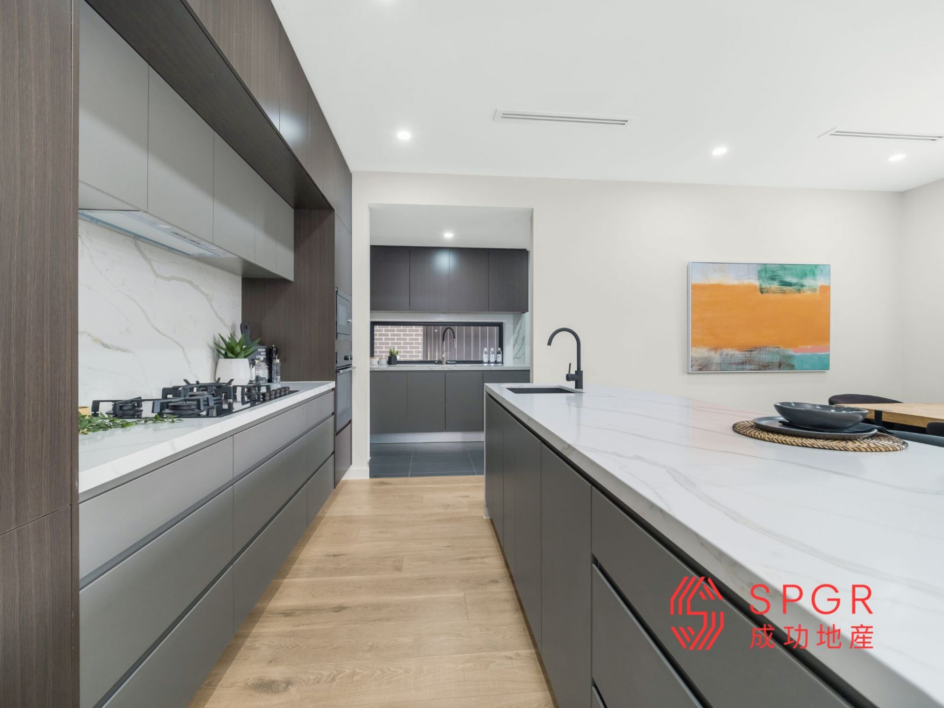- Modern butler kitchen has plenty of storage, stainless steel appliances and soft close cupboards and drawers