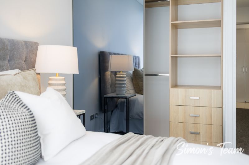The gourmet kitchen features Caesarstone benchtops, a 900mm SMEG gas cooktop, and fully integrated SMEG appliances. With Woolworths and fresh food markets just across the road, daily convenience is assured.