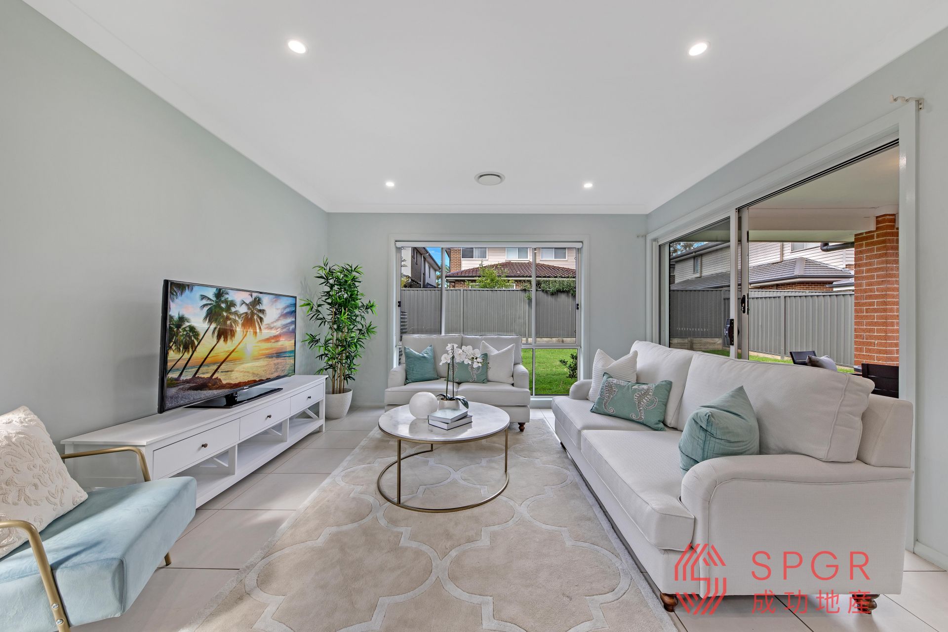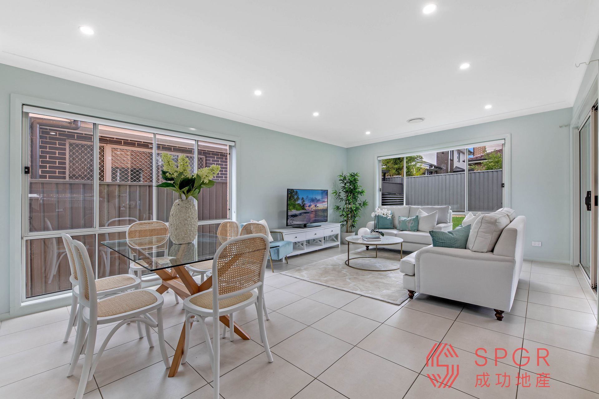 - Open-plan living and dining areas
