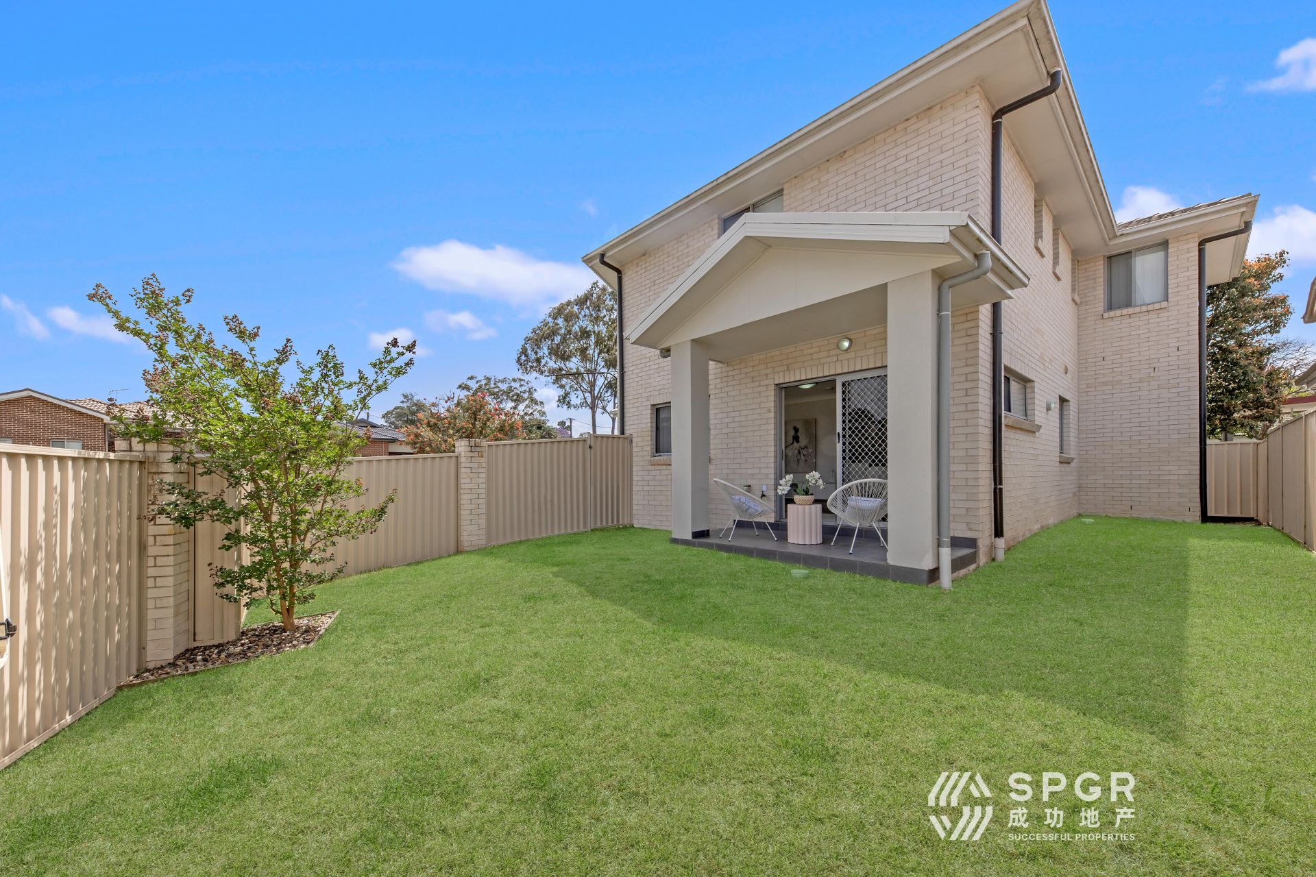 - Easy-to-maintain backyard bathed in sunlight, offering a perfect space for outdoor relaxation and alfresco dining.